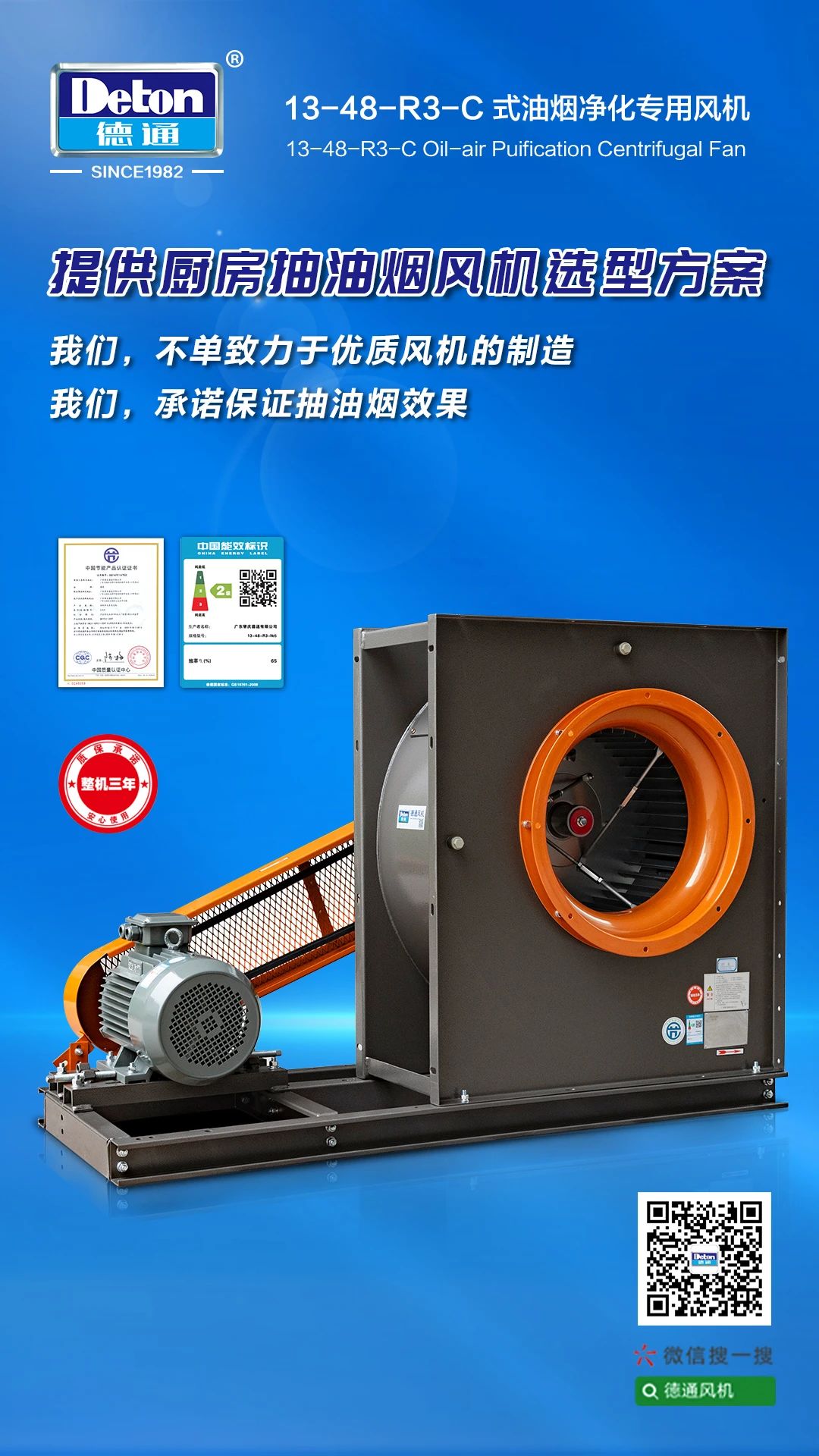 德通風機 優(yōu)選產(chǎn)品 | 13-48-R3-C式油煙凈化專用風機